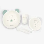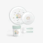 • Kompletan set – Pogodan za djecu od 6+ mjeseci, ovaj set uključuje tanjir, zdjelu, čašu, kašiku i viljušku, pružajući sve što je potrebno za praktično i kompletno iskustvo jela.