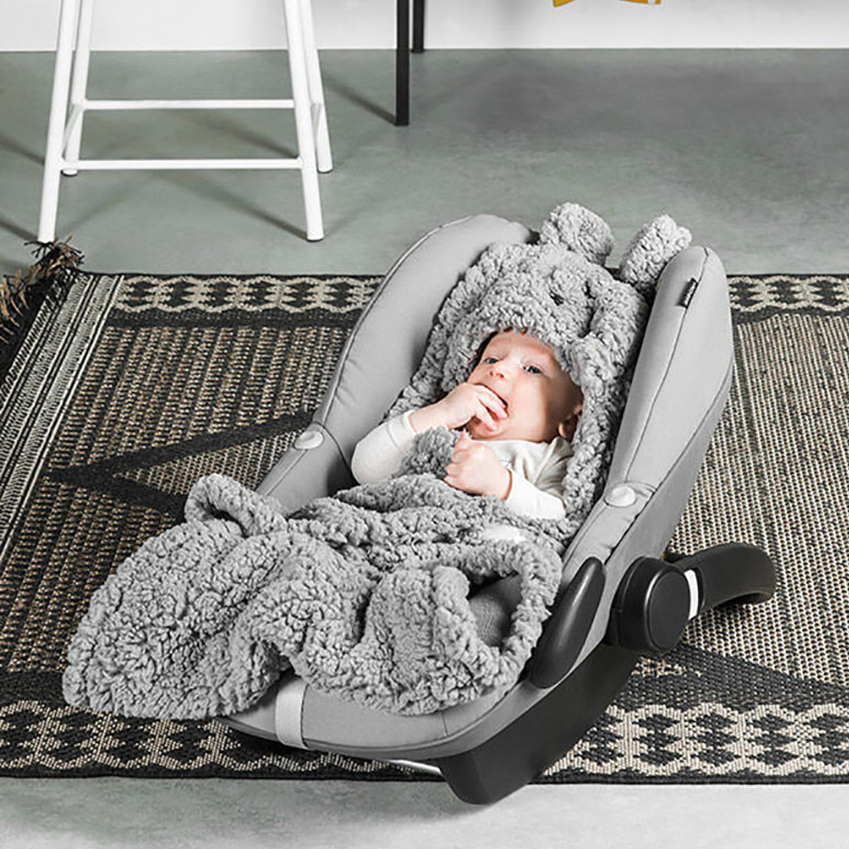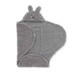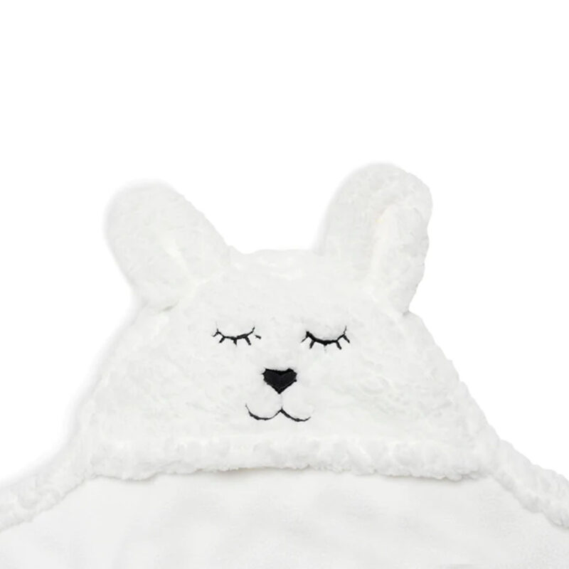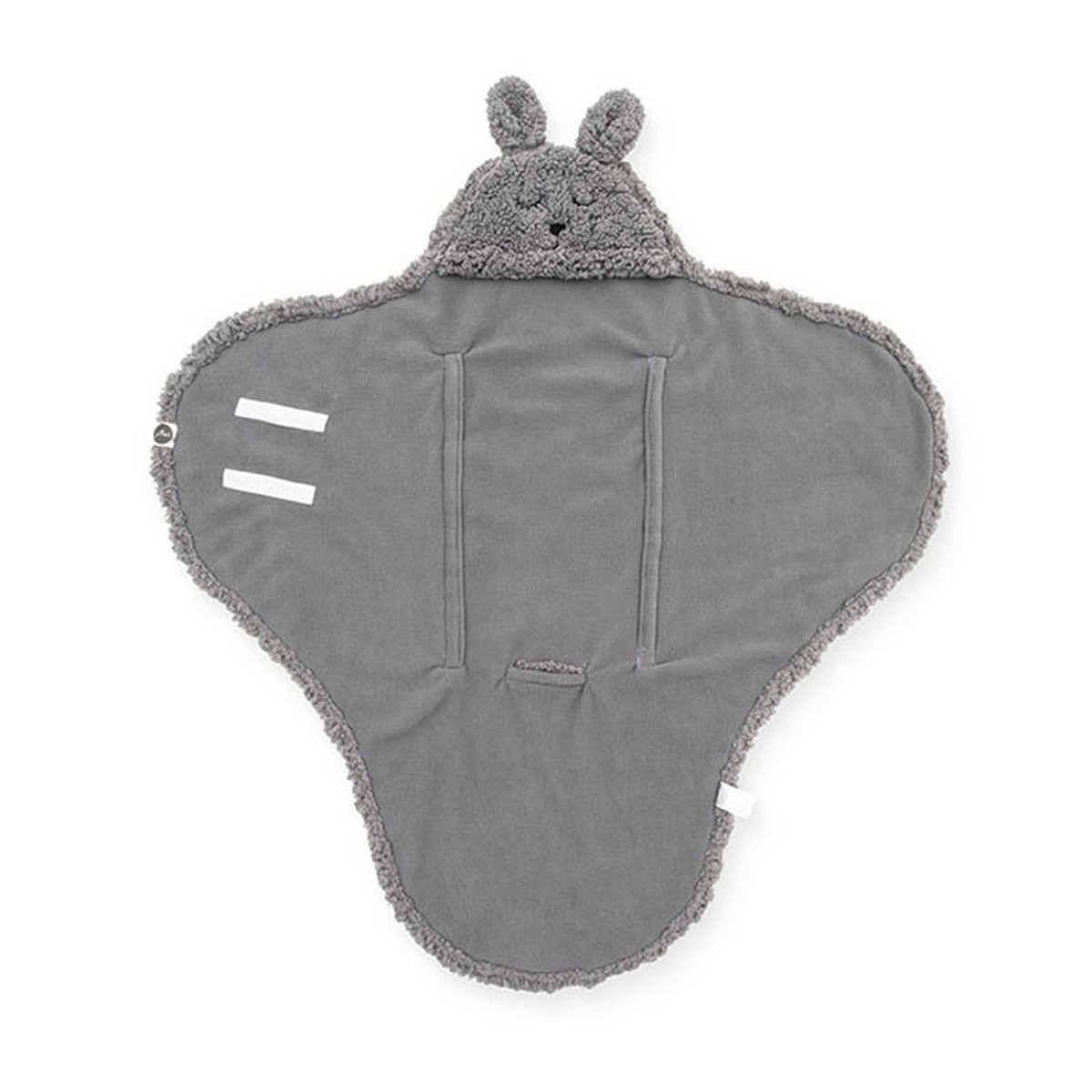 Umotajte svoju bebu u ovo neodoljivo mekano ćebe kako mu ne bi bilo hladno dok ste u šetnji ili na putovanju, a može se koristiti i u kući. Ima otvore kako bi se moglo koristiti u auto sedištu i trake sa čičkom kao bi uvek ostalo na svom mestu. Tkanina je unutra nežna i mekana,a spolja ima izgled krzna. Na vrhu ćebeta se nalazi kapuljača sa neodoljivim zečijim licem i ušima.