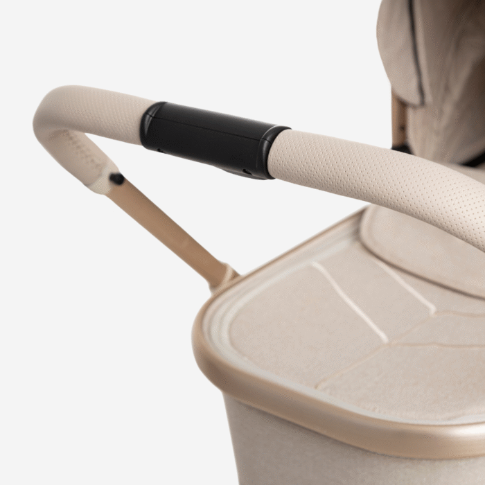 -Prostrana nosiljka za novorođenče – poseduje memory dugme za lako skidanje, 3D AIRFLOW ventilaciju (tri zone za protok vazduha na nosiljci), ugrađenu mrežu protiv insekata i zaštitu od sunca koja je na rajsferšlus. Korpa za bebu se može montirati direktno na ram ili na adaptere za podizanje visine.