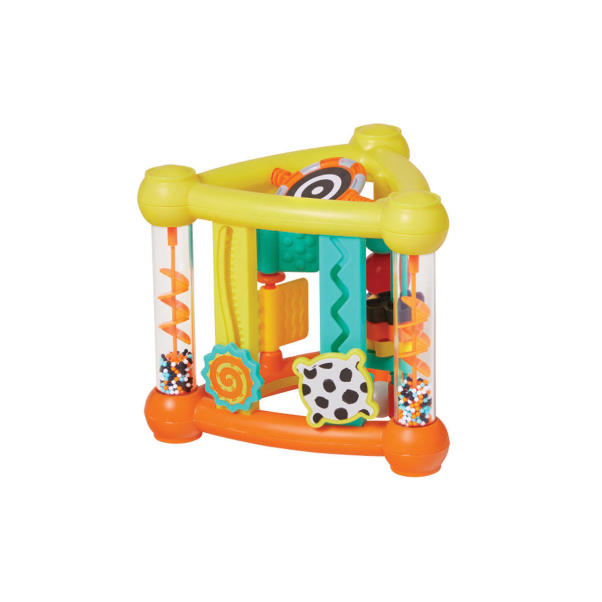 Uključuje 5 laganih prstenova sa više tekstura koji se lako slažu za rano istraživanje. Svetle boje visokog kontrasta podstiču vizuelni razvoj.