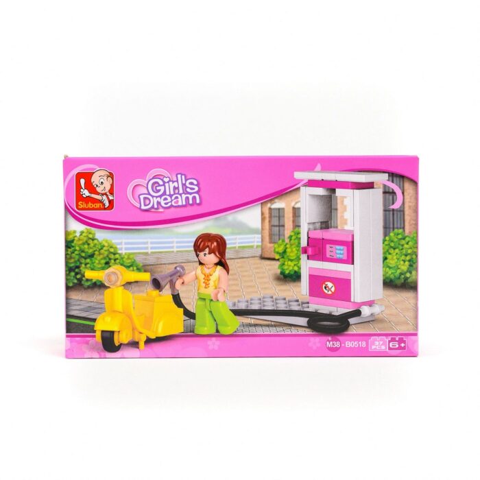 Sluban kocke dolaze u kompletima koji obrađuju različite teme. Igrajući se njima, deca na zabavan način, kroz igru , razvijaju kreativnost i stvaralačko izražavanje. Ovaj konstruktivni set se sastoji od 41 dela od kojih je potrebno sastaviti benzisnku stanicu. Set sadrži sve elemente potrebne za pravljenje benzinske stanice: kocke raznih oblika i veličina, motor, točkove, figure, dodatke za pumpu…. Dim.pakovanja: 14 x 19 x 4,5 cm.