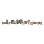 životinjama. Svaka drvena figura pažljivo je ilustrovana s obe strane, set uključuje šine, lokomotivu i vagone, kao i šarmantno ilustrovane dodatke sa