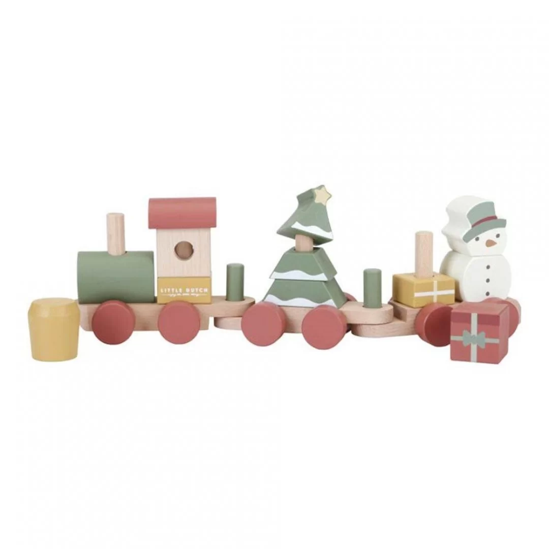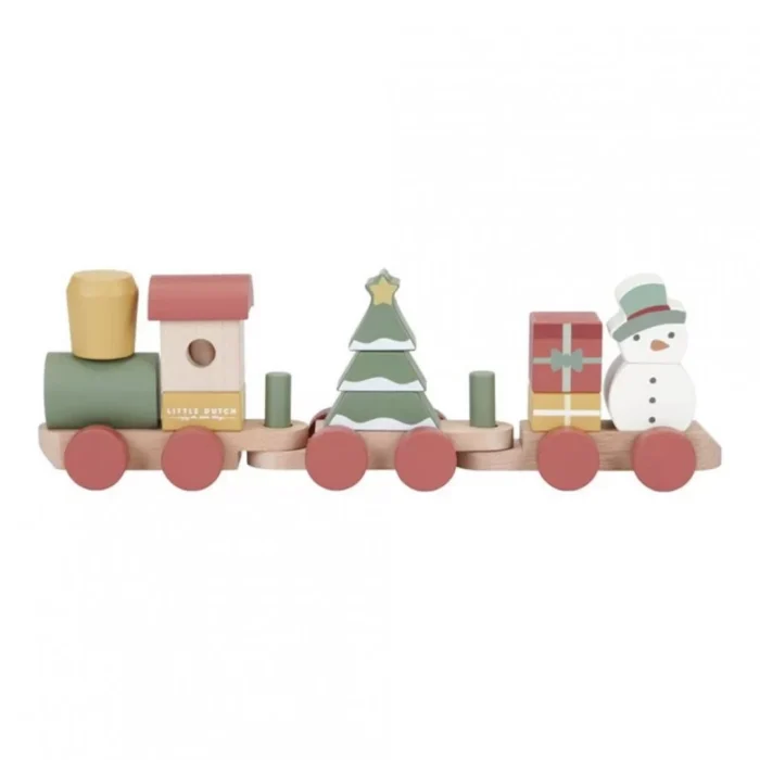 ukrcaju? Sneško belić je već ušao u voz. Koristite različite oblike građevinskih blokova da sastavite božićnu