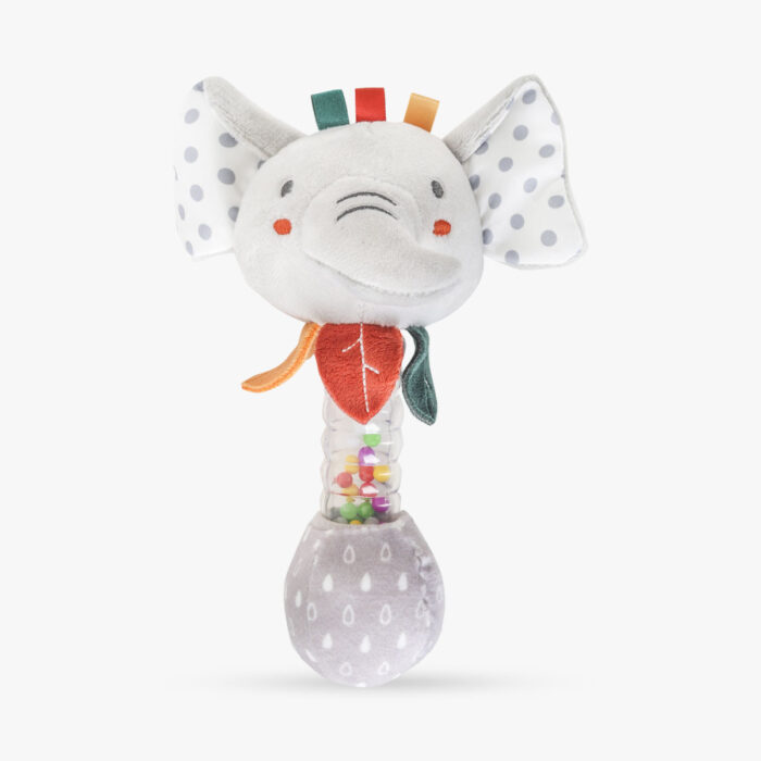 Zvečka u obliku životinje. Jarke i vesele boje čine ovu igračku privlačnom i podstiču bebinu vizuelnu percepciju. Za uzrast 0+ meseci.