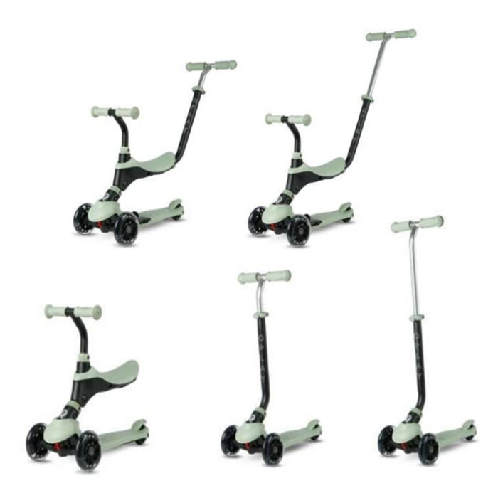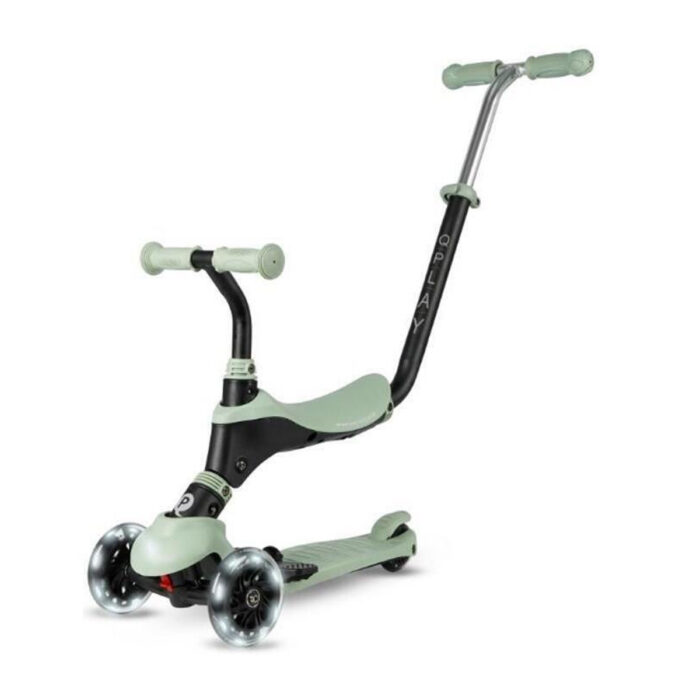 Qplay trotinet Sema 5 u 1 Pro nudi veliki broj mogućnosti za zabavnu i udobnu vožnju. Nisko gazište sa neklizajućim slojem i tri točka omogućavaju lako klizanje i sigurnost. Na gazištu se nalazi i poseban nastavak za odmaranje noge. Bilo da se koristi kao guralica ili kao trotinet, upravljač u obliku slova T se može podešavati po visini. Mekani rukohvati će omogućiti dodatnu udobnost prilikom guranja i vožnje. Na zadnjem točku se nalazi sigurnosna kočnica. Prednji točkovi sa led svetlom učiniće avanture nezaboravnim.